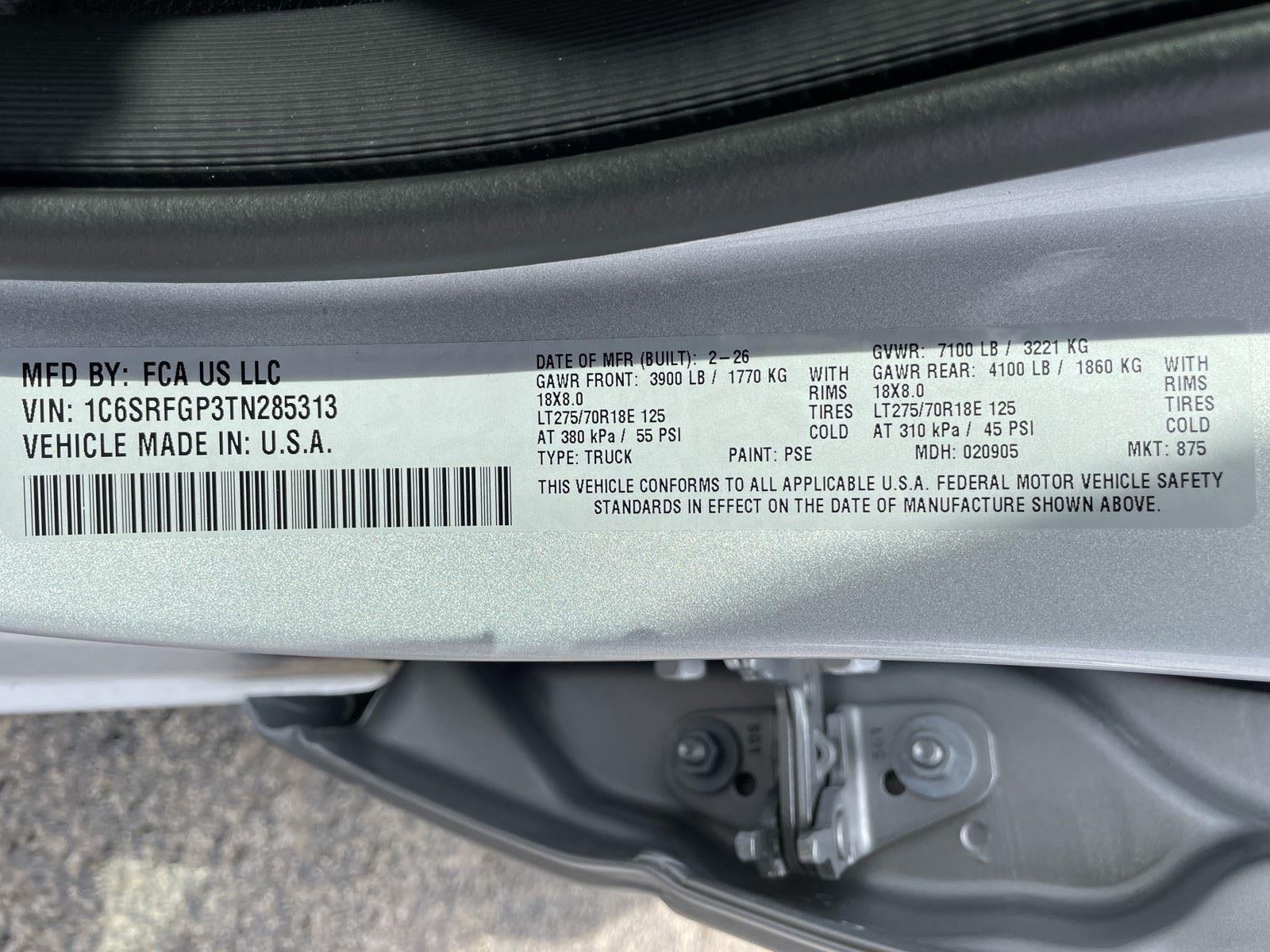 - Rear Tire Size: LT275/70RR18
