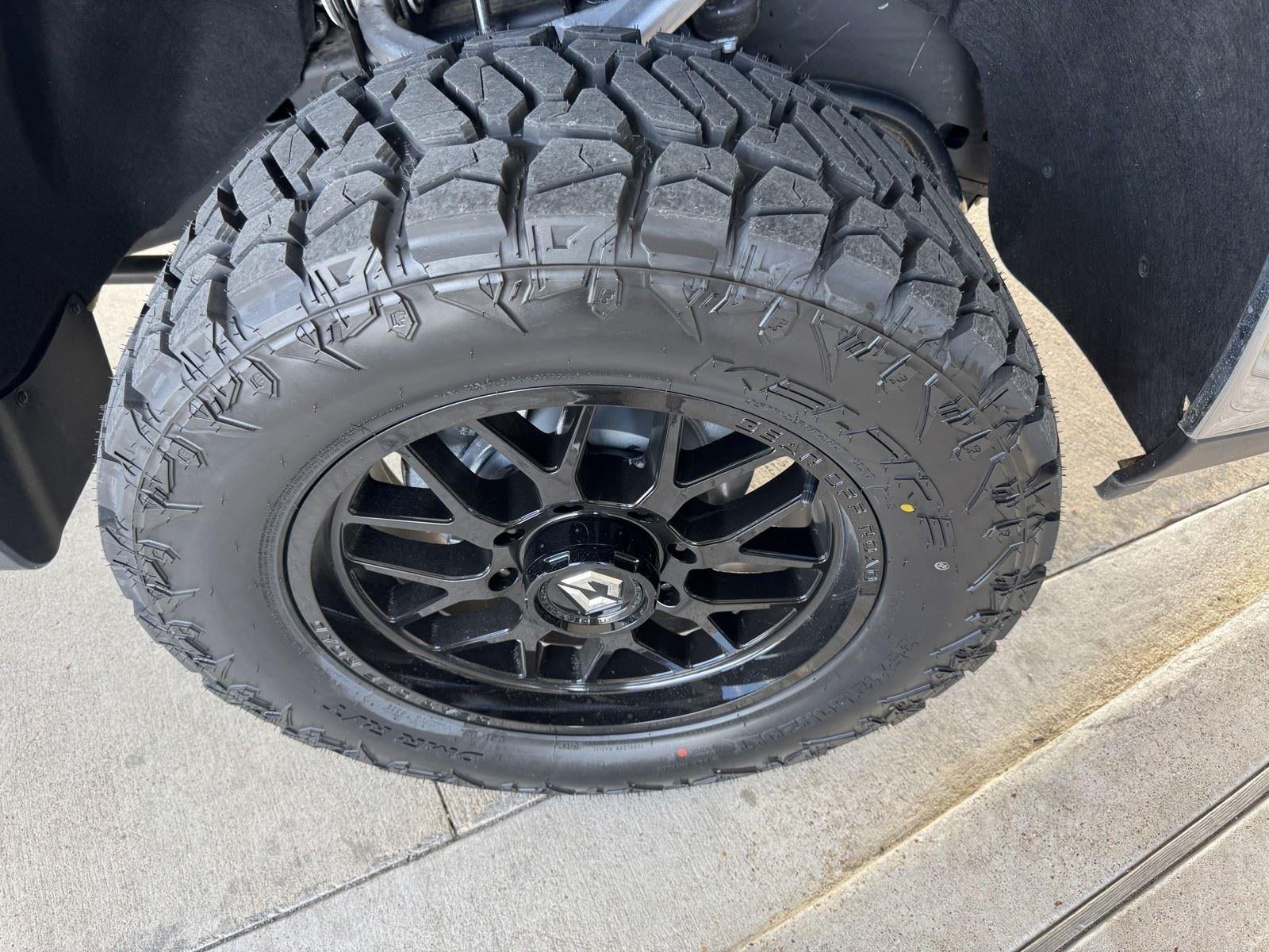 UPFIT: GLOSS BLACK GEAR OFFROAD RAID 763B 20X9 8X180 WHEELS - 35X12.50XR20LT KELFIRE DMR RT HYBRID TIRES - ROUGH COUNTRY 3 INCH LEVEL KIT